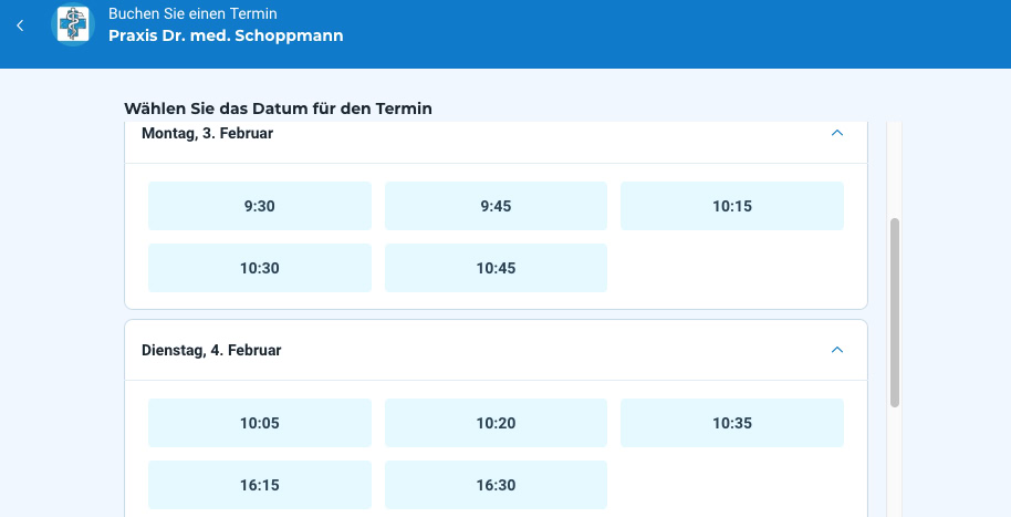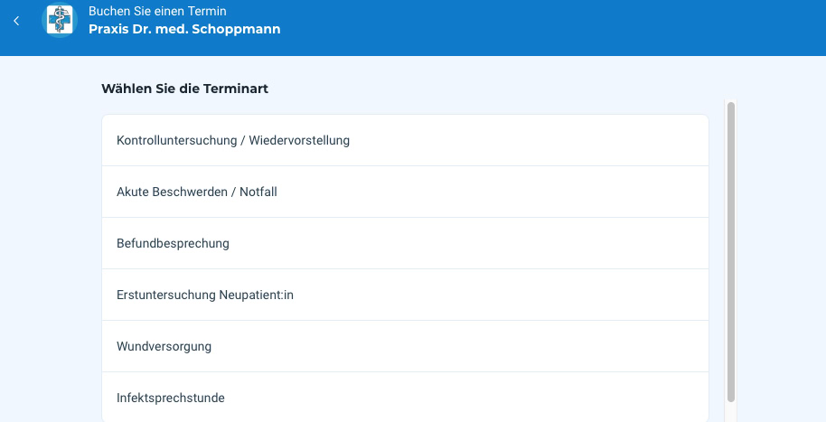 Wir möchten Ihnen unser neues online Termin Buchungstool vorstellen. Dieser online Service ist kostenlos, einfach zu bedienen und bietet Ihnen viele Vorteile sowie die volle Kontrolle über Ihre Termine in unserer Praxis. Suchen Sie sich den für Sie am besten passensten Termin aus. Sie werden per SMS oder E-Mail an Ihren Termin erinnert, oder können diesen auch verlegen, falls Ihnen etwas dazwischen kommt.